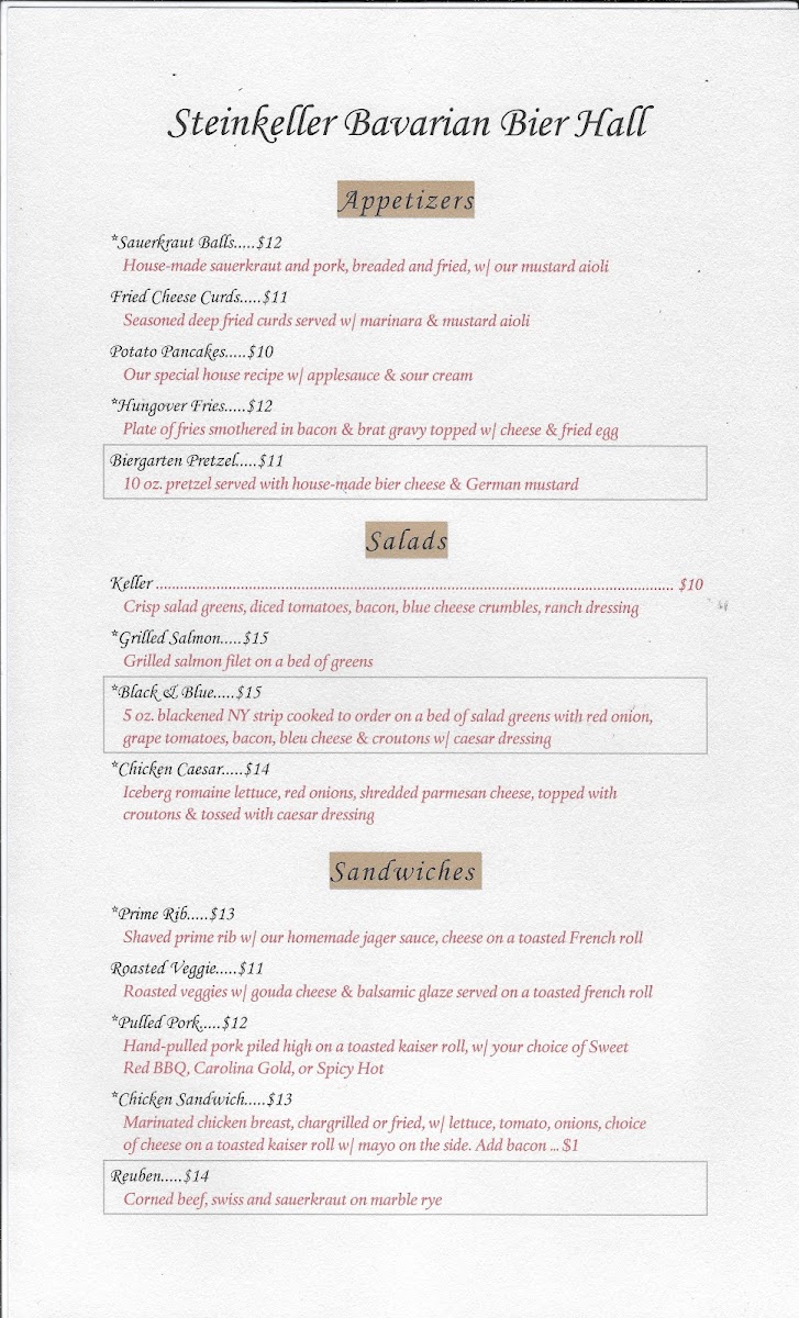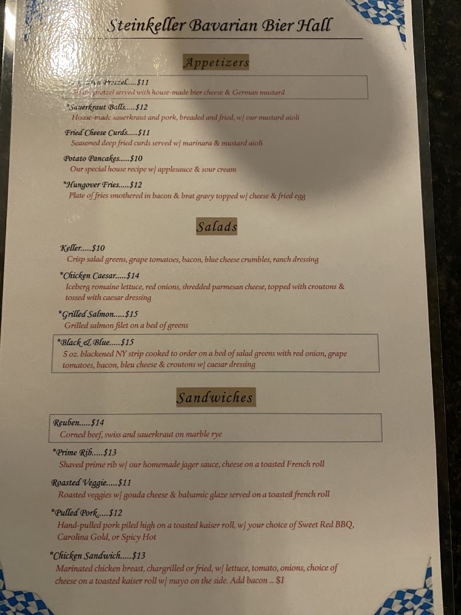 The Steinkeller Menu offers a delightful mix of flavors that will leave you coming back for more. Nestled in the heart of Oxford, OH, just a short stroll from the bustling streets of High St, Steinkeller is the perfect spot for those craving hearty comfort food with a twist. Whether you're in the mood for a mouthwatering burger, a savory bratwurst, or a fresh salad, there's something for everyone.